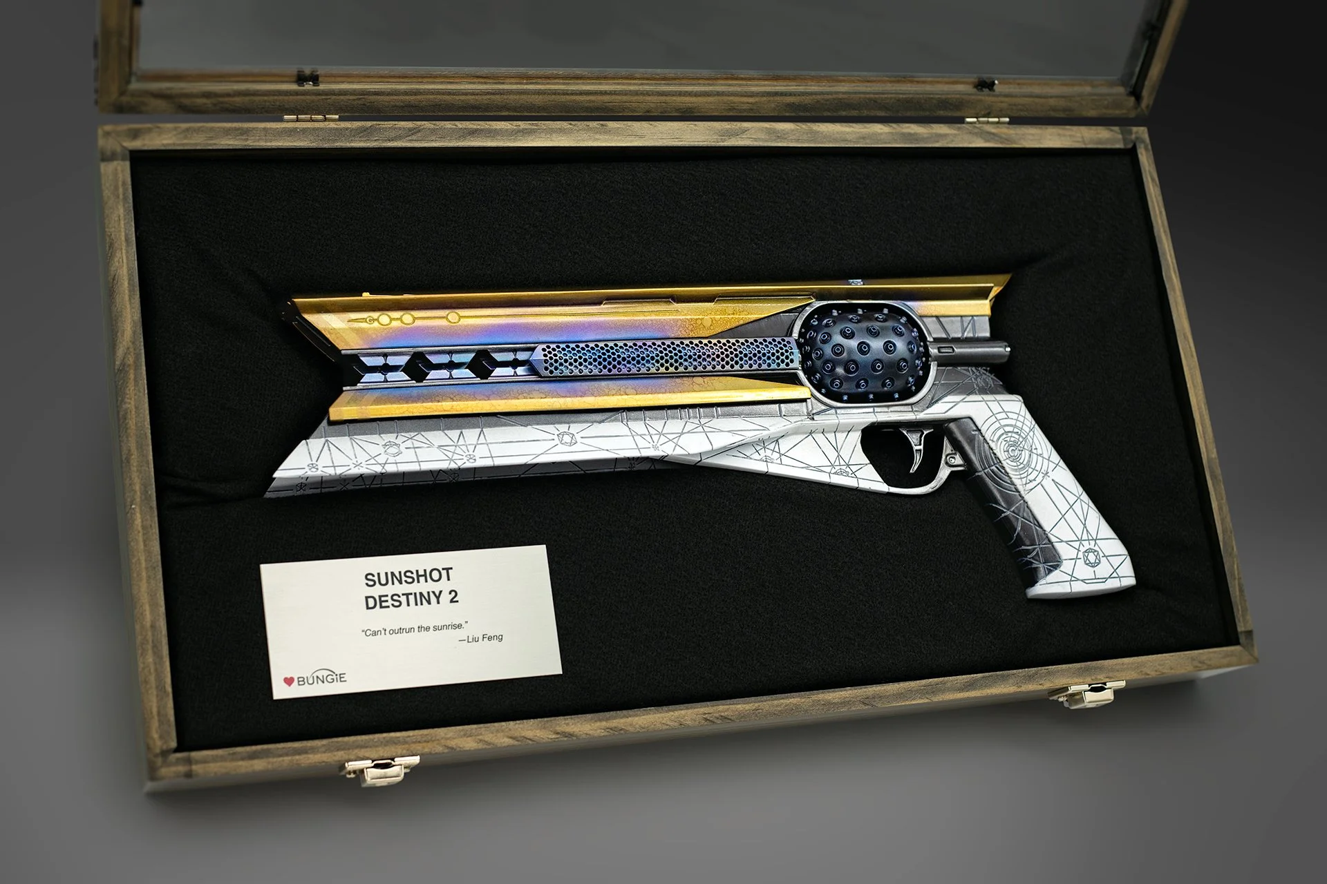 Please note that larger replica selections will be fabricated at half scale. If you prefer a full scale version, Bungie will cover costs up to a designated amount, and you'll be responsible for any difference. For questions or if you would like a full-scale version, contact Employee Services (employeeservices@bungie.com).